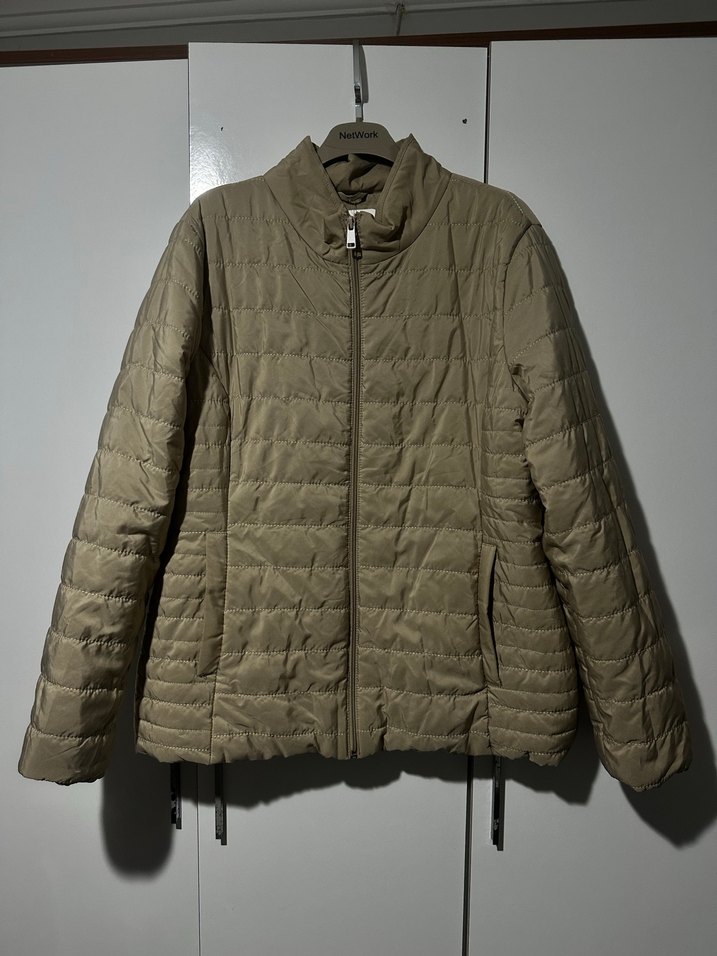 Bej renkte fermuarlı, keten kumaştan yapılmış kadın montu. Normal uzunlukta, regular fit ve notched lapel yakalıdır. Minimalist ve sade tasarıma sahiptir.
