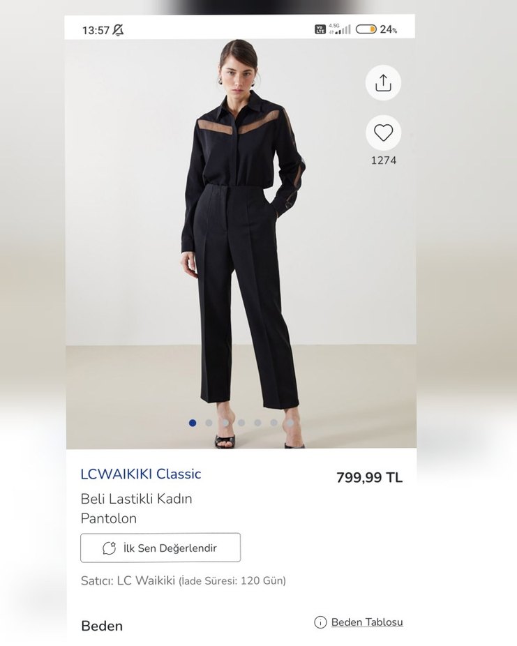 LC Waikiki Beli Lastikli Kadın Pantolon -42 beden Beli lastikli kadın pantolon, günlük kullanım için idealdir. İki yandan cepli oluşu, fonksiyonellik sunar. Viskoz karışımlı kumaşı ise hafif bir kullanım deneyimi sunar. Oldukça rahat ve şık bir pantolon Hiç giyilmedi, etiketi üzerinde, mağaza fiyatı 800 TL