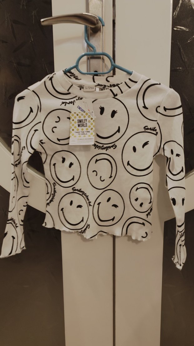 LC Waikiki Beyaz Gülümseme Baskılı Kız Çocuk Tişört