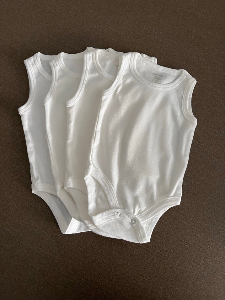 Pamuklu, kolsuz, beyaz bebek body seti. Ürün hediye gelmişti fakat ayı ile uyumlu olmadığı için kullanamadım kullanırım diye de etiketlerini sökmüştüm uzun zamandır dolapta duruyor temiz giymemiş ürün. Dört adet mevcut