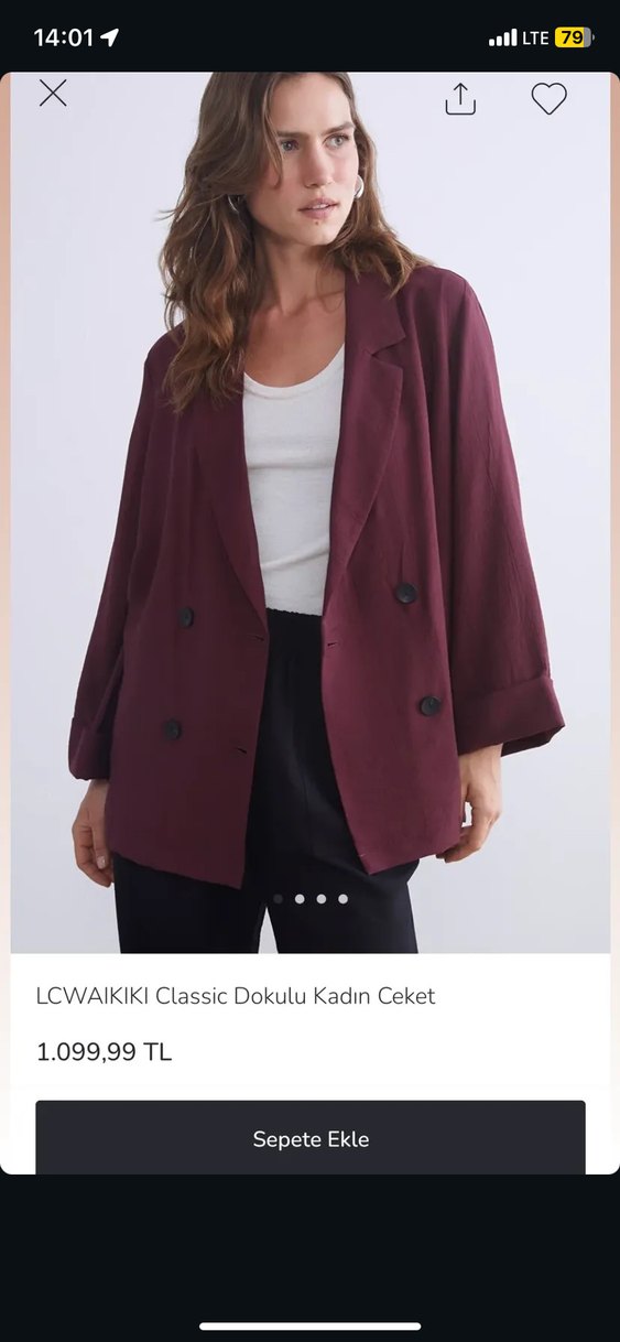 LC Waikiki'den bordo, düğmeli, notched lapel detaylı, bol kesim ve ipeksi dokulu kadın ceket. Ofis için uygun.