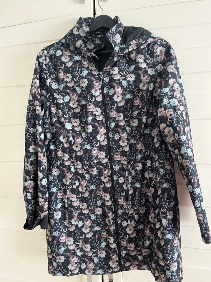 Uzun kollu, düğmeli ve çiçek desenli midi kadın yağmurluğu. Rahat kesimi ve kesik yaka detayıyla günlük kullanıma uygundur. ️
