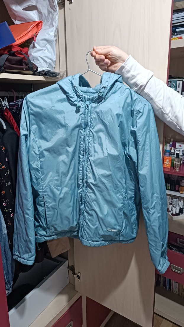 38 beden çift taraflı yağmurluk. Bir yüzü su geçirmez yağmurluk kumaşı, diğer yüzü sıcak tutan polar. Az giyildi, tertemiz durumda. Kapüşonlu, hafif ve çok kullanışlıdır. Hem yağmurlu havalarda korur hem de polar yüzeyiyle soğuk günlerde sıcak tutar. Günlük kullanım, spor, yürüyüş ve okul için ideal bir model. Her iki yüzünde de cepler vardır. Fotoğraflar günceldir.