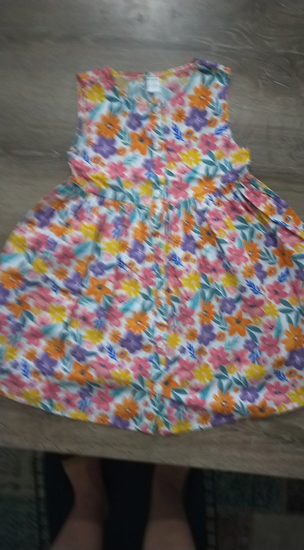 Lc Waikiki markalı, çok renkli çiçek desenli, kolsuz ve önden düğmeli elbise. 5-6 yaş