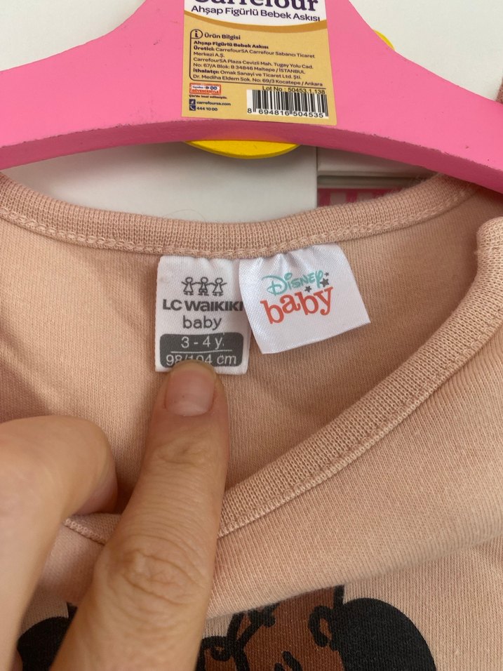 LC Waikiki Disney Baby marka, 3-4 yaş bebekler için pastel pembe baskılı önlük. Yumuşak ve konforlu kumaştan üretilmiştir.