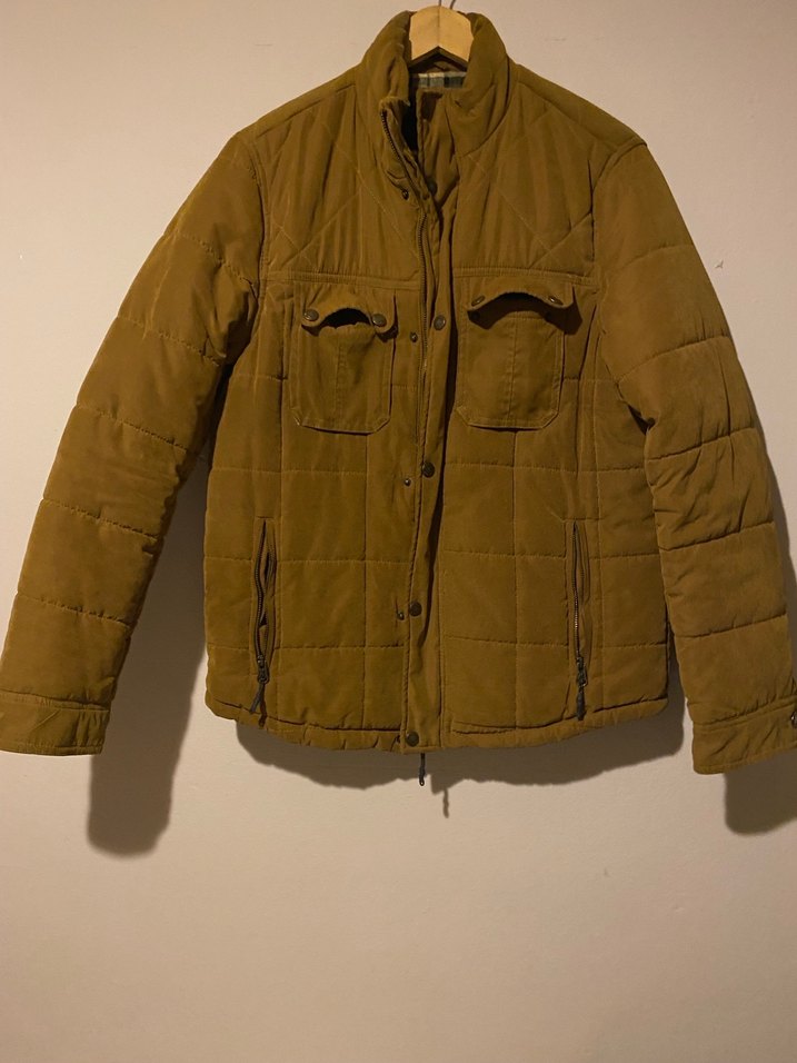 Düğmeli, fitted kesim kahverengi erkek mont, yakasında kesik yakalı detay bulunur. Uzun kollu ve midi boyda, dış mekanda kullanıma uygun, yumuşak ve sıcak kumaştan yapılmıştır.