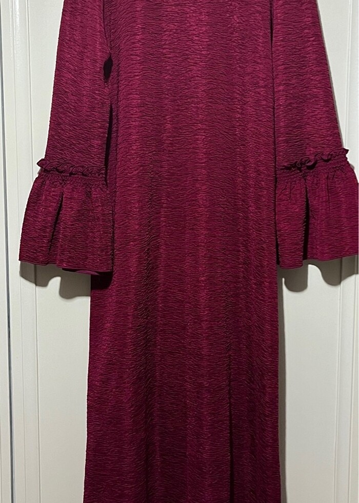 • Yumuşak dokulu, rahat kesim uzun elbise. • Şık ve modern volan kol detaylarıyla özel bir tasarım. • Günlük kullanım, davetler veya özel günler için ideal. • Çok az kullanıldı • Kumaş: Esnek ve rahat bir kumaş.