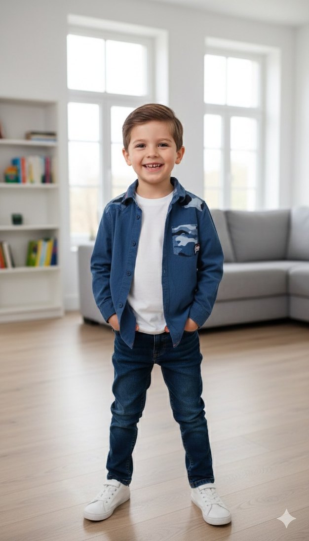LC Waikiki Erkek Çocuk Mavi Kamuflaj Denim Gömlek