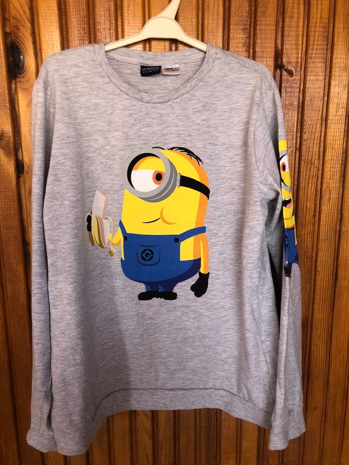 LC Waikiki marka gri renk üzerine önü ve sol kolu minion baskılı uzun kollu bisiklet yaka 11-12 yaşa uygun erkek çocuk sweatshirt koltukaltı ölçüsü 46 cm boy 55 cm