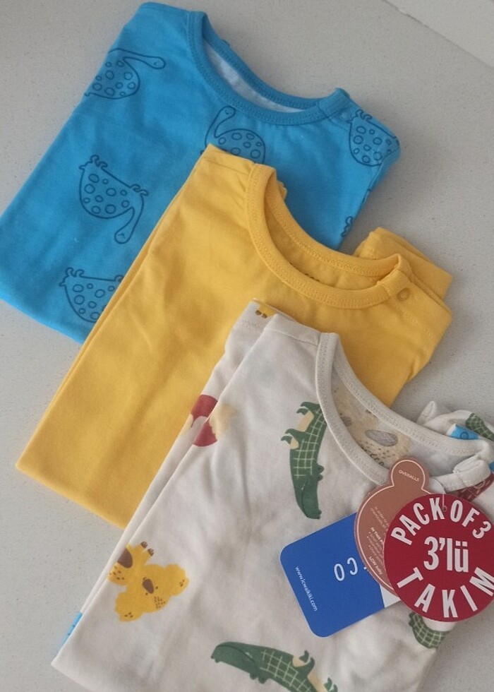 Sıfır Ürün Harika Renk ve Model Üstün Kalite Uygun Fiyat Beden 6/9 ay. 3 Adet Fiyatıdır. Yaz mevsiminde kıyafet Kış aylarında iç çamaşırı olarak kullanılabilir. !!!!! SON 1 ÜRÜN!!!!!