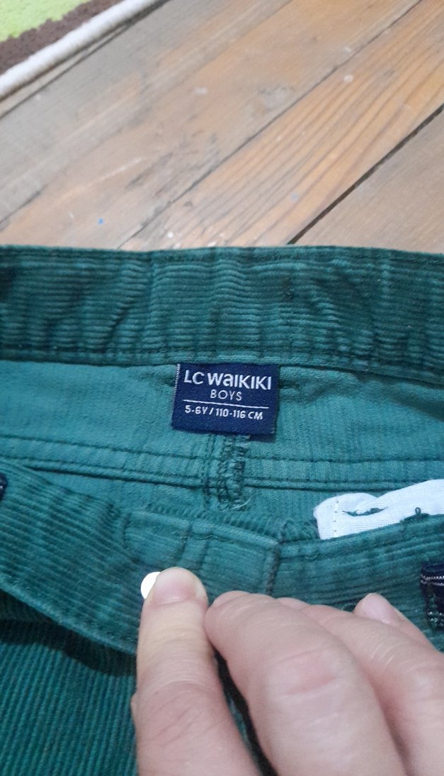 LC Waikiki erkek çocuklar için düğmeli, yeşil renkte, sokak stili pantolon.kadife, midi boy ve desen içermeyen tasarımda.