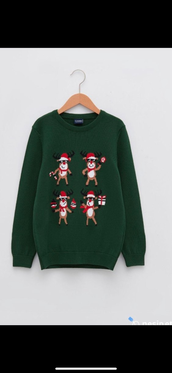 Lc waikiki pamuklu yeşil kazak 3-4 yaşa uygundur. Erkek çocuk için yuvarlak yakalı, uzun kollu ve bol kesim yeşil triko kazak. Yumuşak ve sıcak kumaştan, renkli geyik desenleri bulunur.