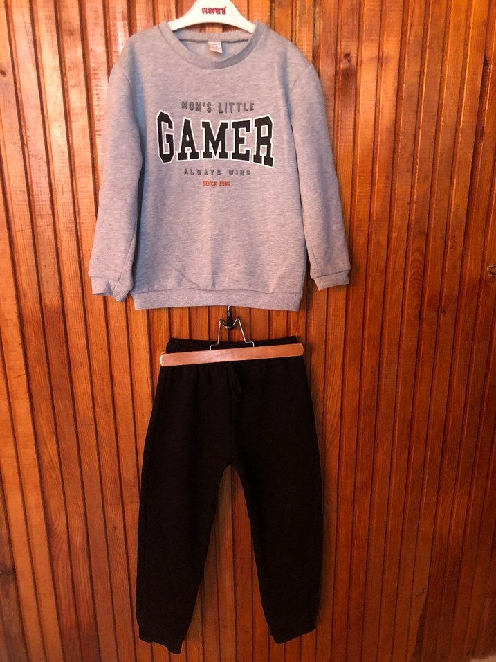 LC Waikiki marka üst uzun kollu bisiklet yaka önü yazı baskılı alt beli ve paçaları lastikli cepsiz pamuklu kışlık 7-8 yaş erkek çocuğa uygun eşofman takımı