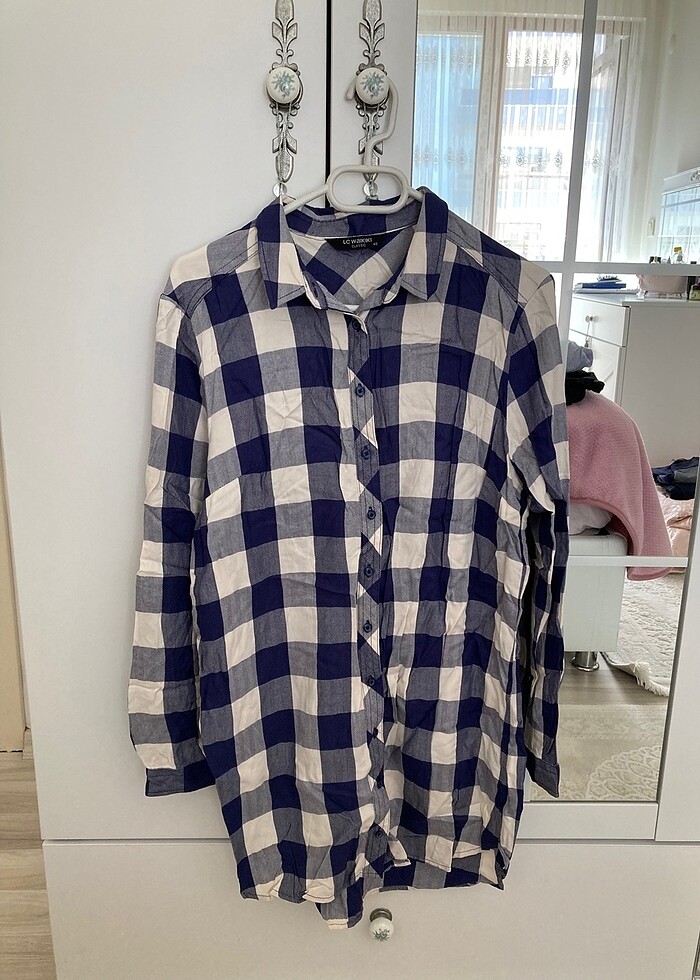 Lc Waikiki marka 40 beden gömlek. Hiçbir kusuru yoktur artık kullanmadığım için satıyorum sayılı giydim. (Hurçta muhafaza ettiğim için kırışık görünüyor) Ürünün boyu: 82 cm İki koltuk altının çevresi: 53 cm