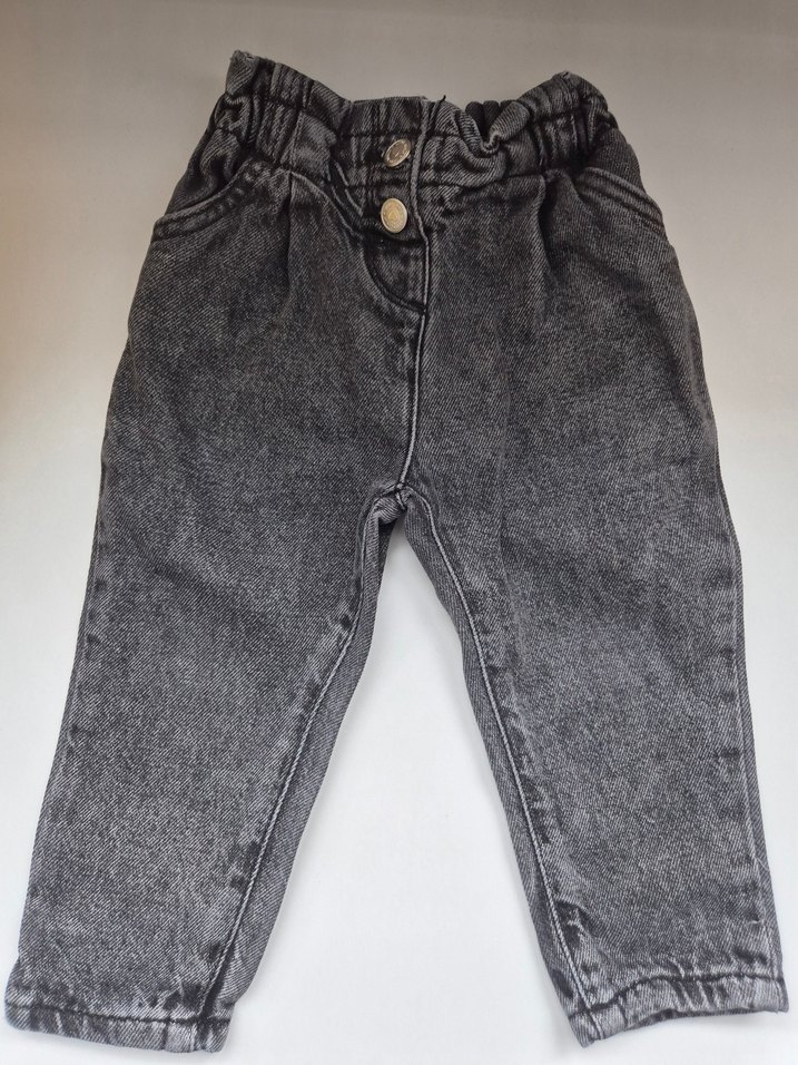 Gri düğmeli, bol kesim kız denim pantolon. Desensiz ve sokak tarzına uygun. 2 yaşına kadar kullanılabilir hiçbir sorun çıkmıyor.