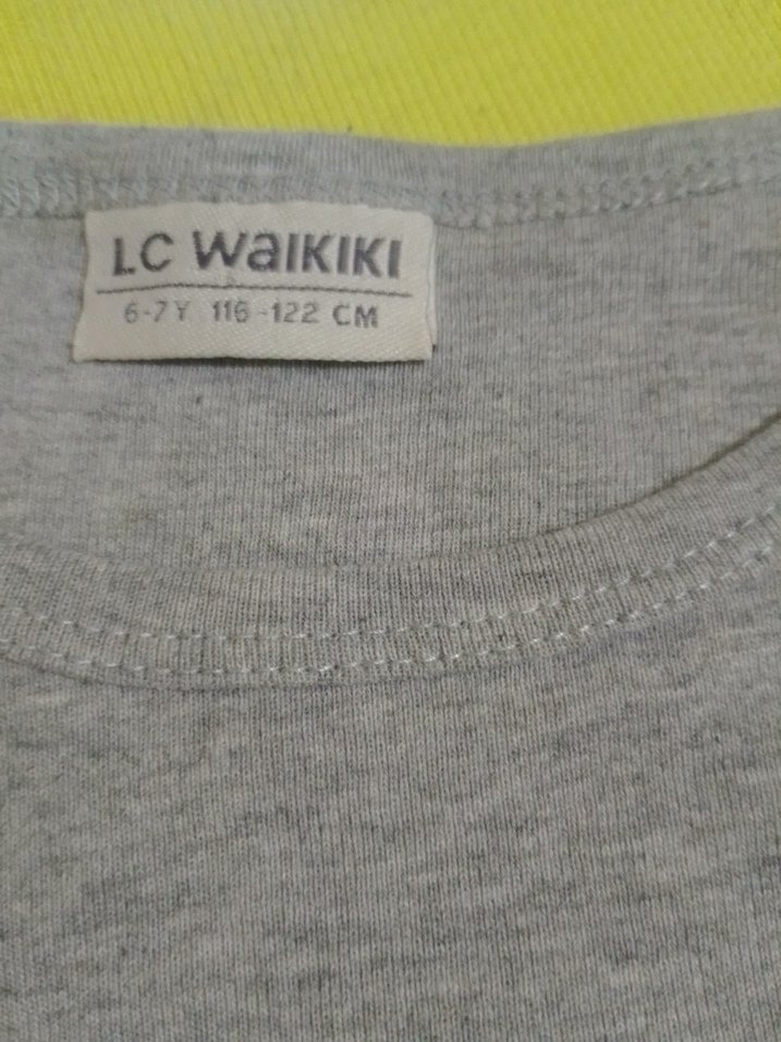 LC Waikiki markalı, 6-7 yaş erkek çocuklar için gri tişört. Rahat dikişleri ve yumuşak kumaşıyla günlük sokak stili için uygundur.