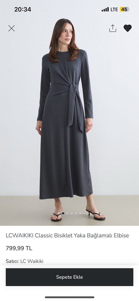 LC Waikiki'den gri uzun elbise, yüksek yakalı ve belden bağlamalıdır. Sentetik kumaştan, ofis için uygun minimal ve normcore tarzda rahat kesimdir. sıfır