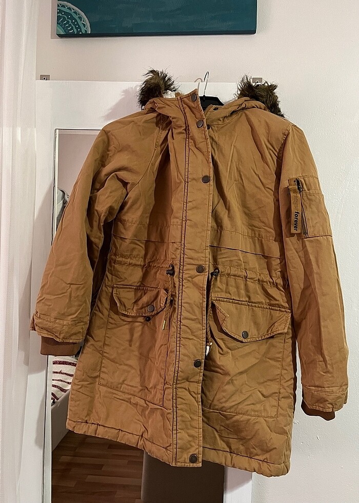 LC Waikiki kadın parka ürünüdür. İç kısmı yünlüdür kılın oldukça sıcak tutuyor. Şapkasındaki lü kısım düğmelidir isterseniz çıkarabilirsiniz. Cepleri oldukça kullanışlıdır. Standart kalıptır, 40 bedenseniz rahatça olacaktır. Defosu yoktur.