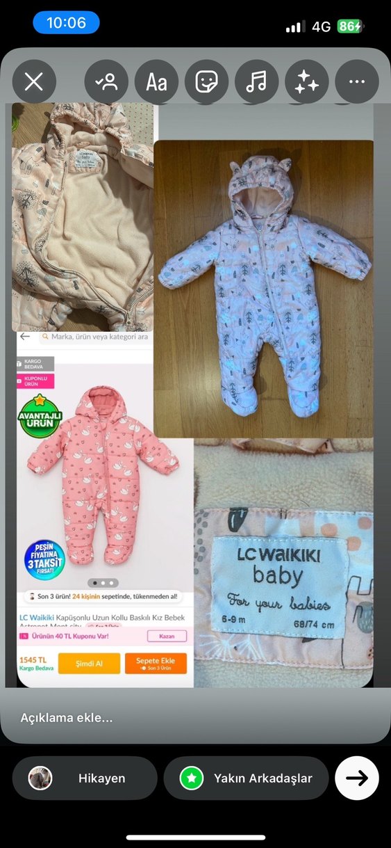 LC Waikiki markalı kapüşonlu, kulak detaylı, desenli, pastel pembe kız bebek ASTRONOT tulumu. 6-9 ay, 68/74 cm, içi yumuşak ve sıcak tutan kumaş. ❄️