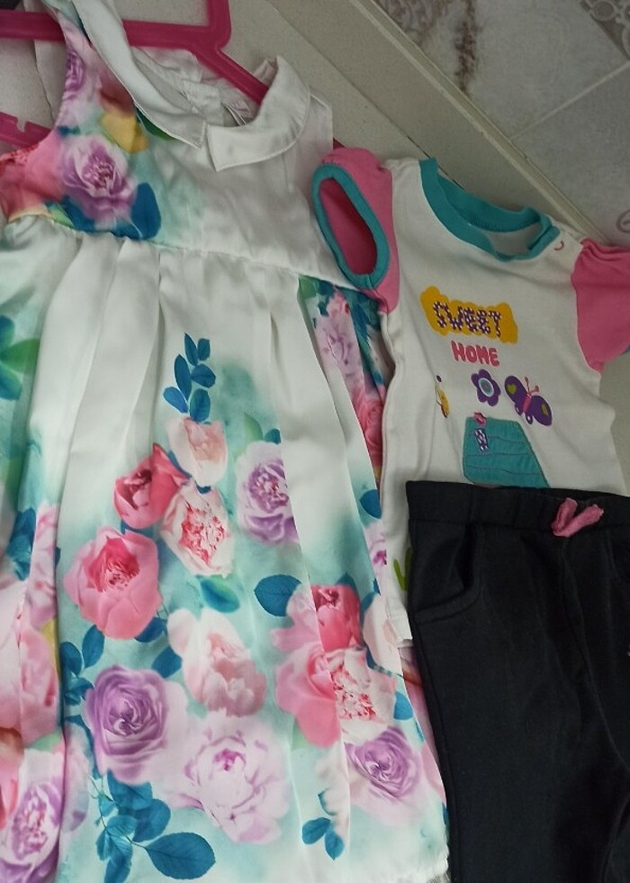 Sorunsuz sıfır ayarında şık bebek elbisesi ve alt üst kıyafet. İkisinin fiyatıdır