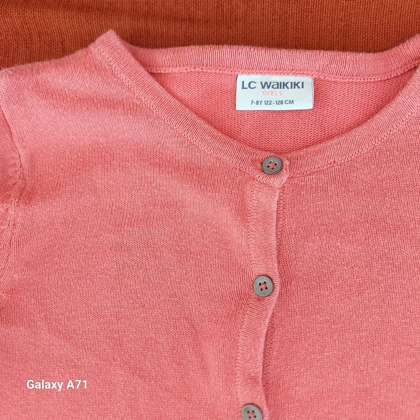 LC Waikiki markalı, düğmeli, pastel pembe renkte, yün kumaştan, uzun kollu ve bol kesim kız çocuk hırka.