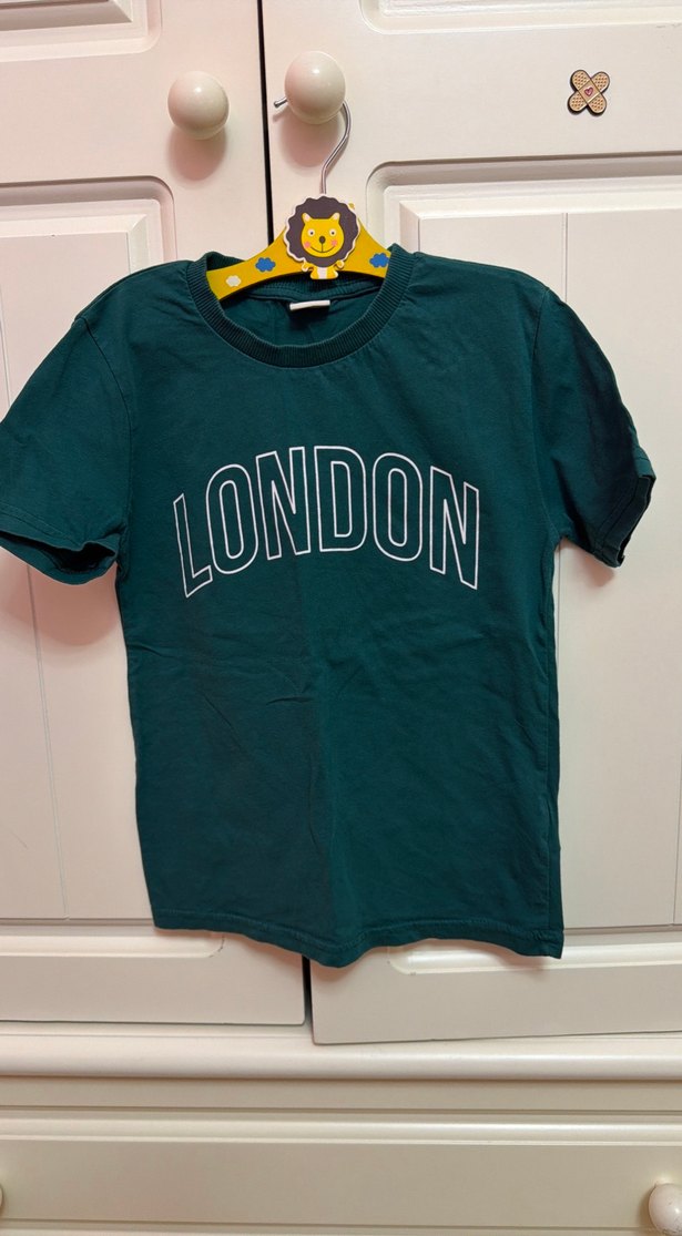 Kız ve Erkek çocuk uyumlu pamuklu, yeşil renkli, kısa kollu, yuvarlak yakalı ve bol kesim LONDON baskılı tişört. Trendy sokak stili sunar.