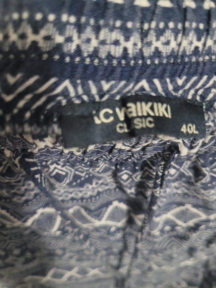 LC Waikiki klasik koyu mavi vintage desenli kumaş ve 40L beden etiketiyle.etek