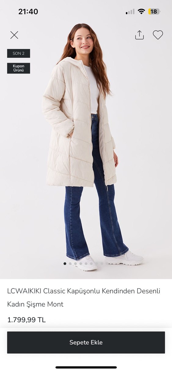 Kadın mont midi boy hamileyken almıştım sımdı büyük geldıgı ıcın satıyorum çok rahat ve sıcak tutuyor krem rengi fiyatta yardımcı olurum