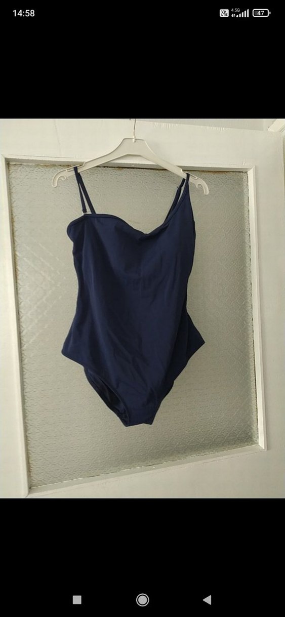 Lacivert renkli, ince askılı ve vücuda oturan bu mayo, minimalist tasarımıyla plajda cesur bir görünüm sunar. Midi uzunluğu ve şık duruşuyla dikkat çeker.