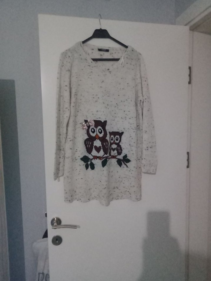 ürün az kullanılmış temizdir Uzun kollu, yuvarlak yakalı, yumuşak örgü kumaştan yapılmış kadın kazak. Bol kesim ve kısa boy, baykuş desenli baskıyla rahat sokak stili için uygun.