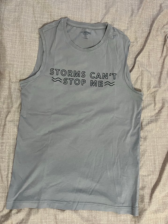 LC Waikiki marka kolsuz spor tişört. Üzerindeki “Storms Can’t Stop Me” yazı detayıyla şık ve sportif durur. Hafif ve rahat kumaşı sayesinde spor yaparken terletmez. Fitness, koşu ve günlük kullanım için uygundur. Temiz kullanılmıştır, herhangi bir yırtık, sökük veya leke yoktur. Yaza uygun, kombinlemesi kolay bir parçadır.