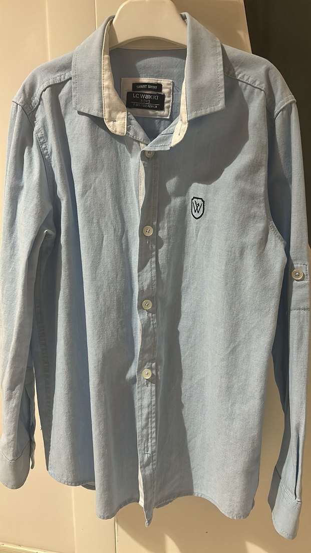 LC Waikiki markalı, mavi-gri tonlarında, uzun kollu ve düğmeli, regular fit denim erkek gömlek. Göğüs kısmında küçük nakışlı logo bulunur. Sıfır gibi yeni 7 yaş