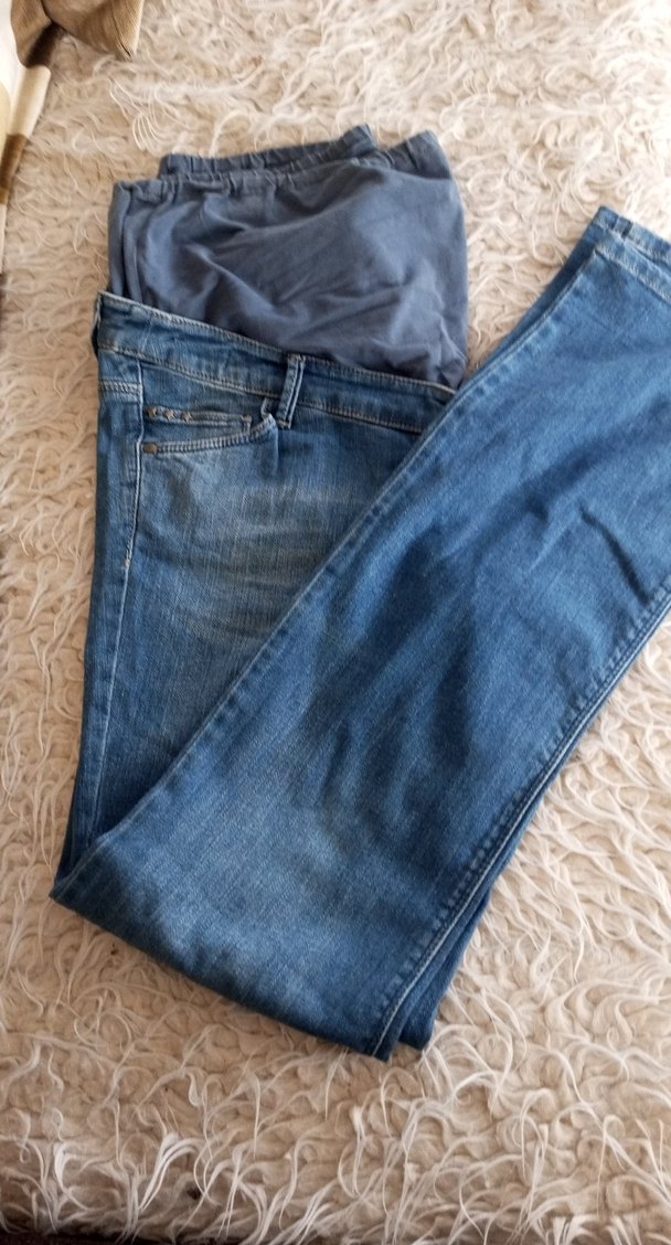 elastik bel bantlı, mavi denim kumaştan bol kesim hamile pantolonu. Normal boy, günlük kullanıma uygun rahat ve şık görünümlü.