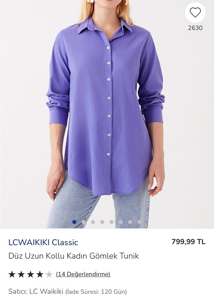 LC Waikiki 0 pamuk gömlek mor hiçbir deformesi yoktur sadece bir kez kullandım