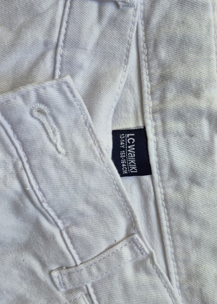 lcw 13-14 yaş Beyaz koton pantolon. Beli 36cm . uzunluğu 99 cm. fotoğrafları kaydırarak bakabilirsiniz