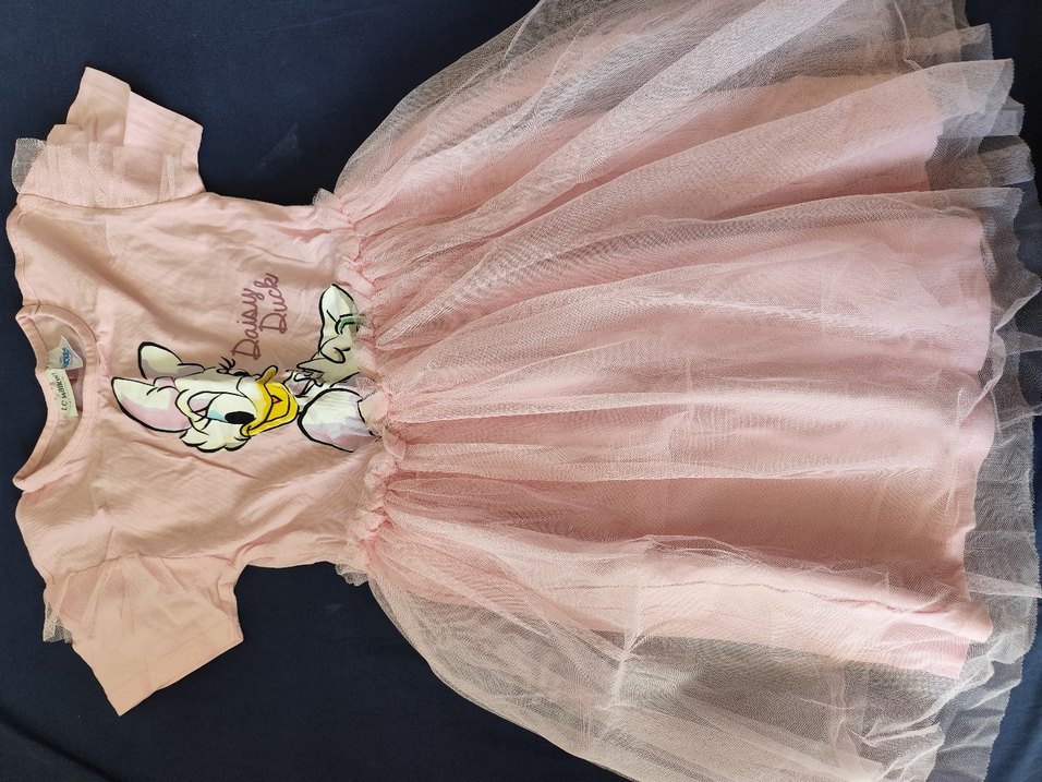 LC Waikiki markasına ait, pastel pembe renkli, baskılı desenli çocuk elbiseı. 8-9 yaş arası çocuklar için uygundur. ️