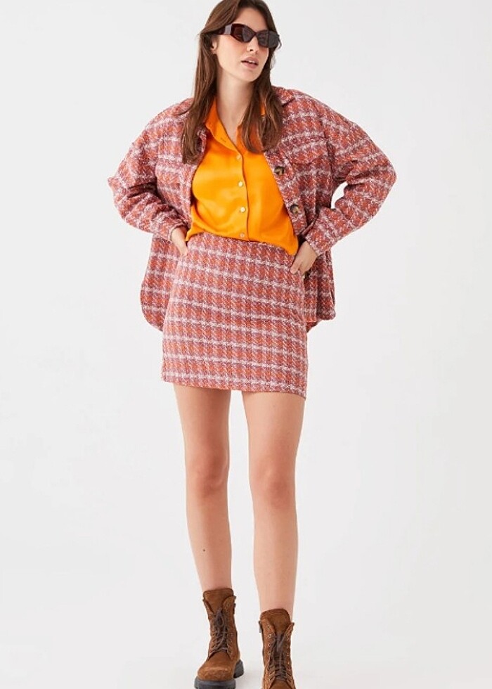 LC Waikiki Pembe Ekose Tüvit Etek - Görsel 1