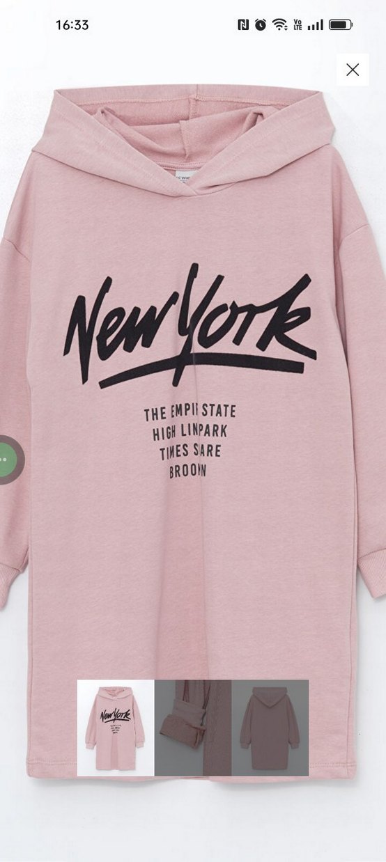 6_7 yaş Pembe, uzun kollu, bol kesim sweatshirt, New York temalı baskı detaylarıyla ve yuvarlak yakalı ve kapşonludur . pamuklu kumaştan üretilmiştir.