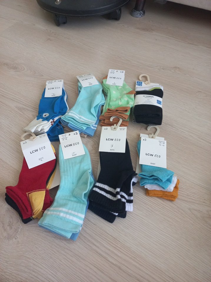 LC Waikiki markalı, çeşitli açık ve canlı renklerde kız çorapları seti. Çizgili ve düz modeller içerir. 3 çift
