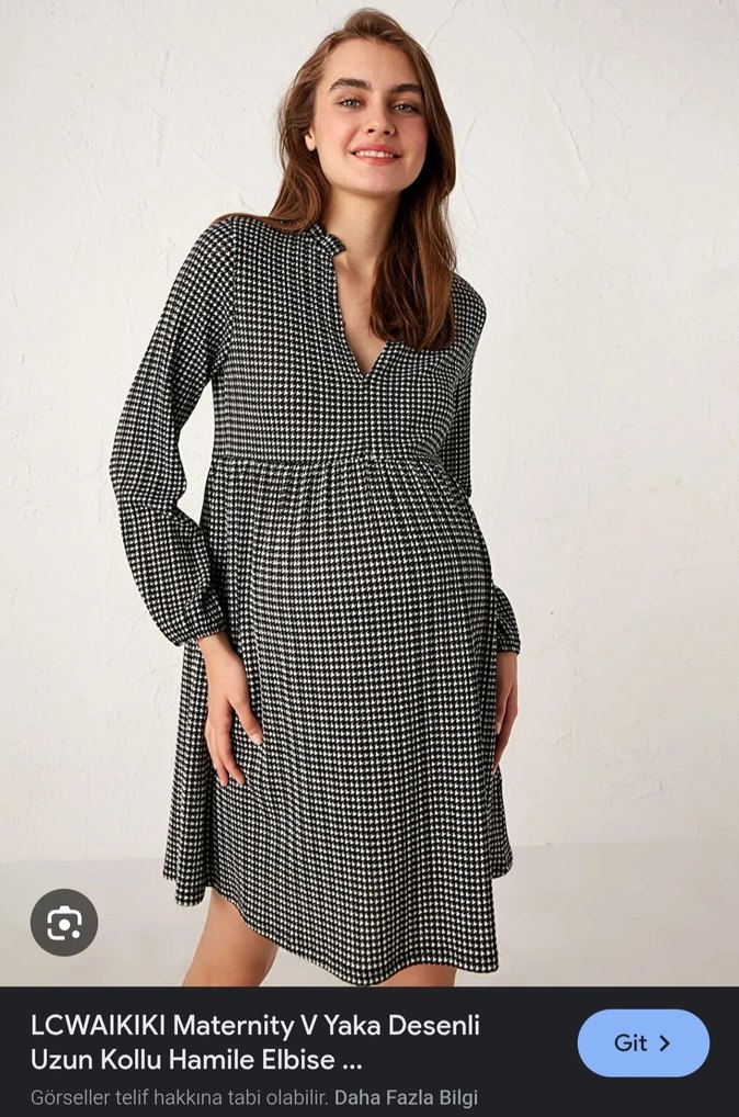LC Waikiki siyah ve gri kareli, V yaka, uzun kollu hamile elbisesidir. Rahat kesim ve pile detaylarıyla günlük kullanıma uygundur. Yumuşak sentetik kumaştan üretilmiştir. s beden ama oldukça esnek bir kumaşı var m ve l beden de giyebilir