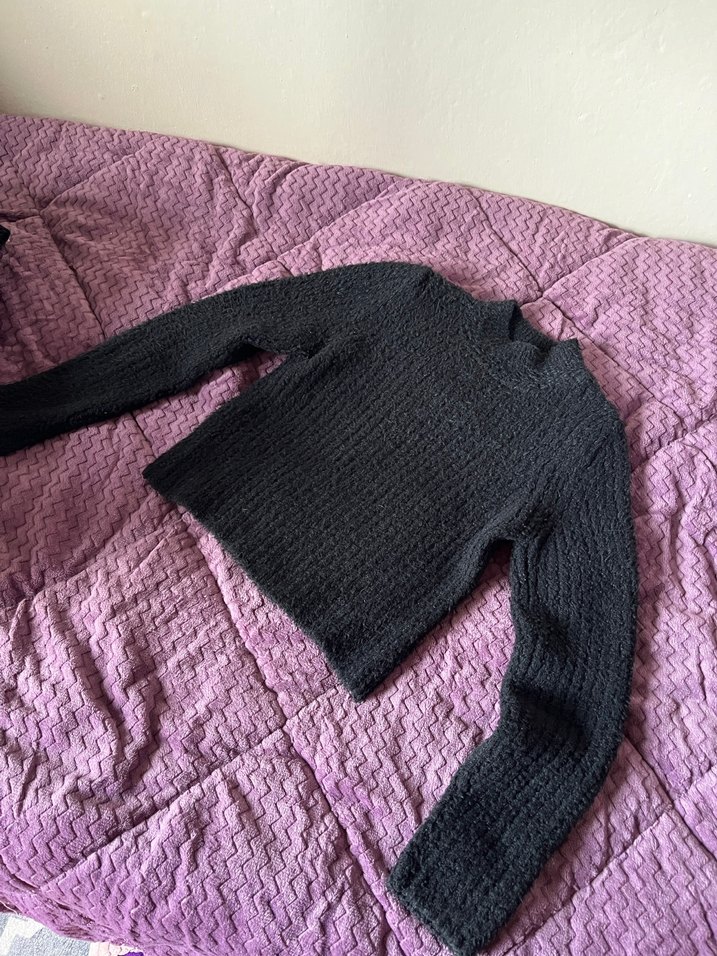 Lc waikiki siyah tüylü crop kazak