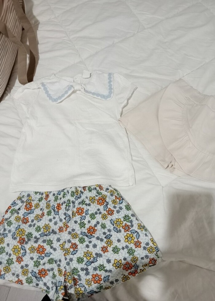 Takım 1 kere giyildi. 3/4 yaş bedeni ama kalıbı küçük. Şort etekte 1 2 defa giyildi
