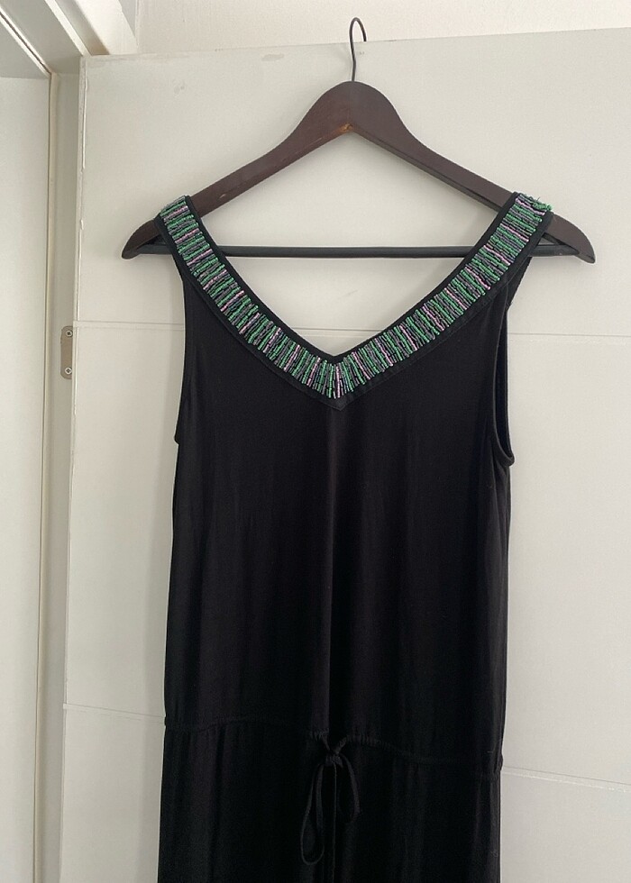 Hiç kullanılmadı.Yakası boncuklarla işli penye elbise.Yazın kurtarıcı parçalarından.Giy çık bir ürün.Hiçbir defosu yok.Sadece iç etiketi kesilmiş.36-38 bedenler kullanabilir.Resimlerde olduğu gibidir..#Mango#Mudo#Koton#Zara#Lc Waikiki#Seçil#DeFacto#Stradivarius#H&M#