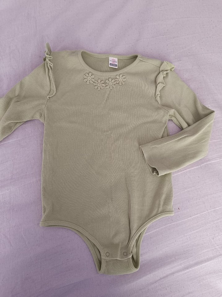 Yeşil renk uzun kollu body, omuzlarda narin fırfırlar ile çiçek işlemeli. Lc Waikiki marka 4 - 5 yaş a uygundur.