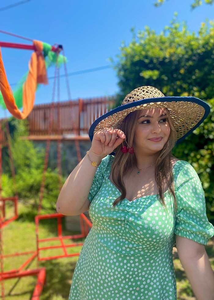 LC Waikiki Yeşil Beyaz Puantiyeli Elbise