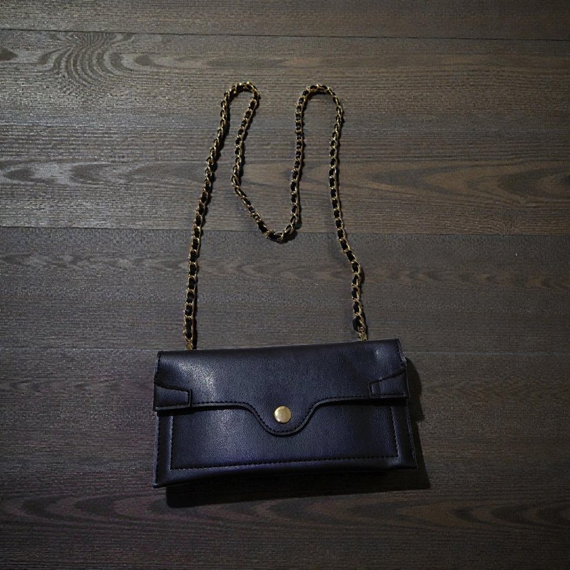 Zincir askılı, siyah deri kadın çantasıdır. Desensiz sade tasarımıyla günlük sokak modasına Paris havası katar.