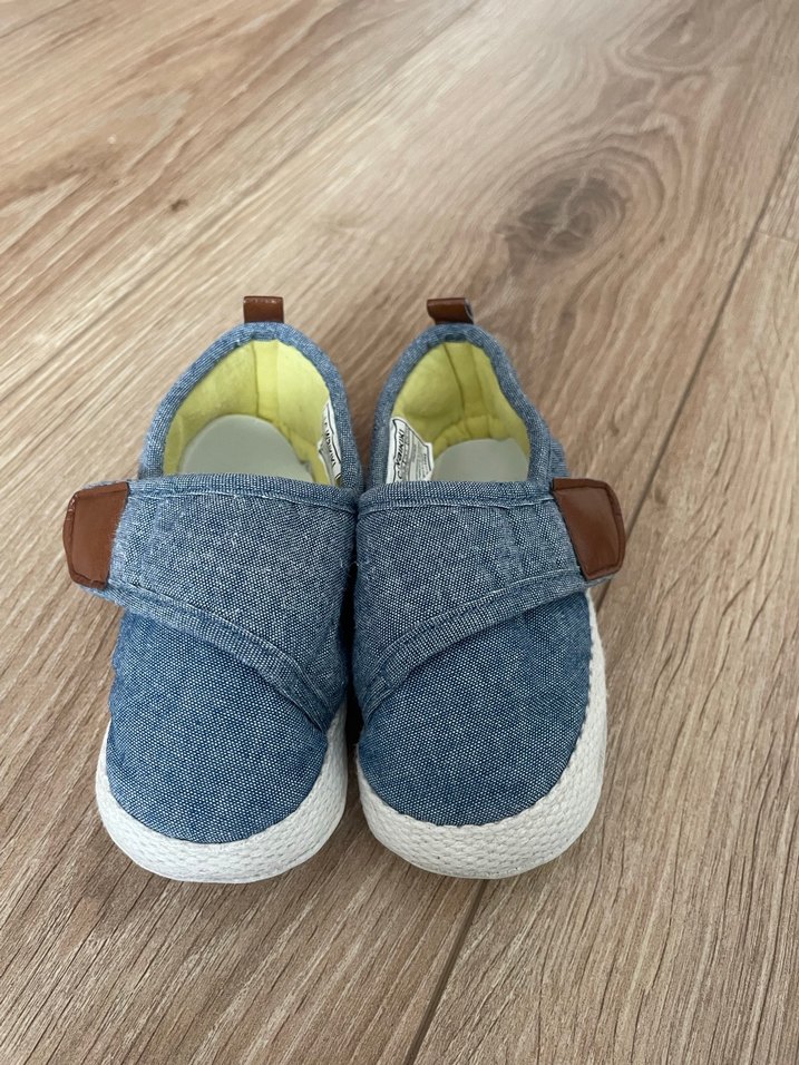 Mavi denim kumaştan, cırt cırtlı ilk adım ayakkabısı. Temiz kullanıldı yeni gibi.