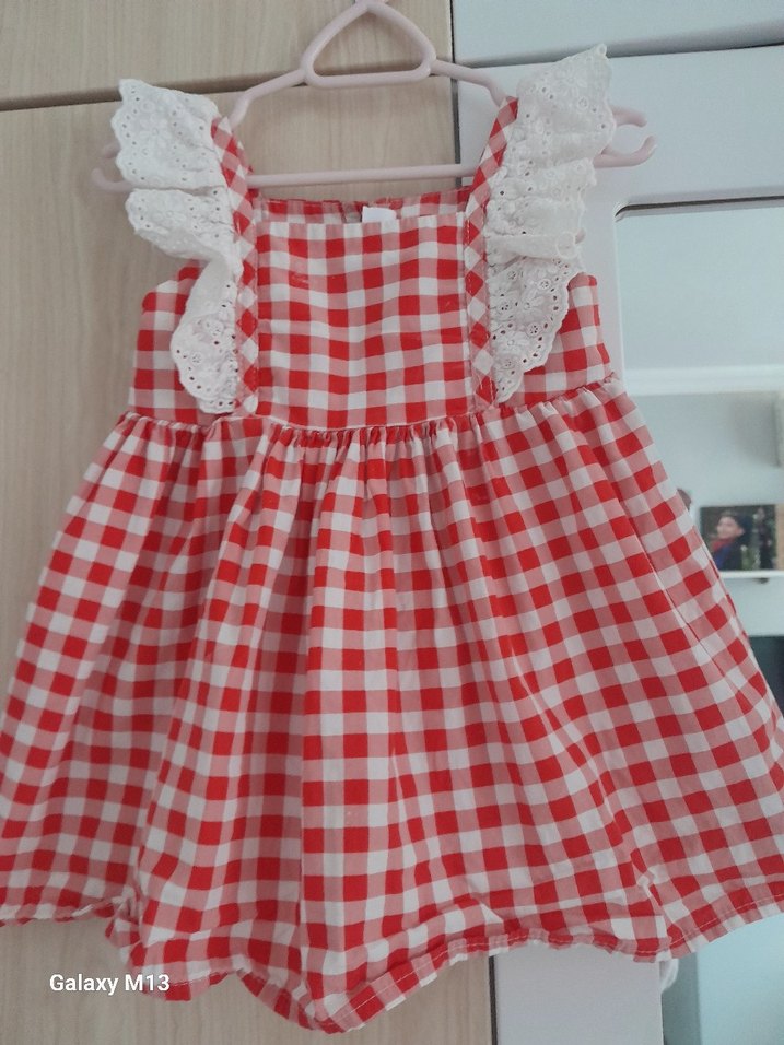 LC Wakiki Kız Çocuk Kırmızı Kareli Fırfırlı Elbise
