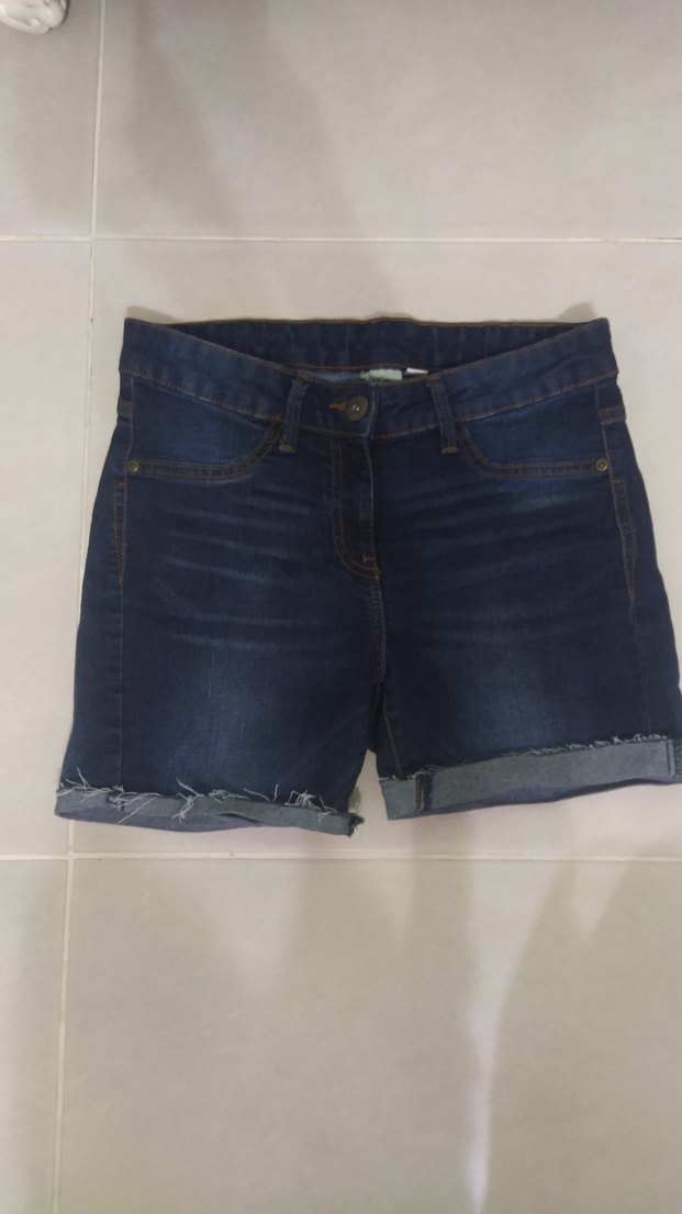 Lacivert kot şort, bol kesim ve kemerli bel yapısıyla rahat bir kullanım sunar. Koyu renk ve katlı paça detayları günlük sokak tarzına uygundur.