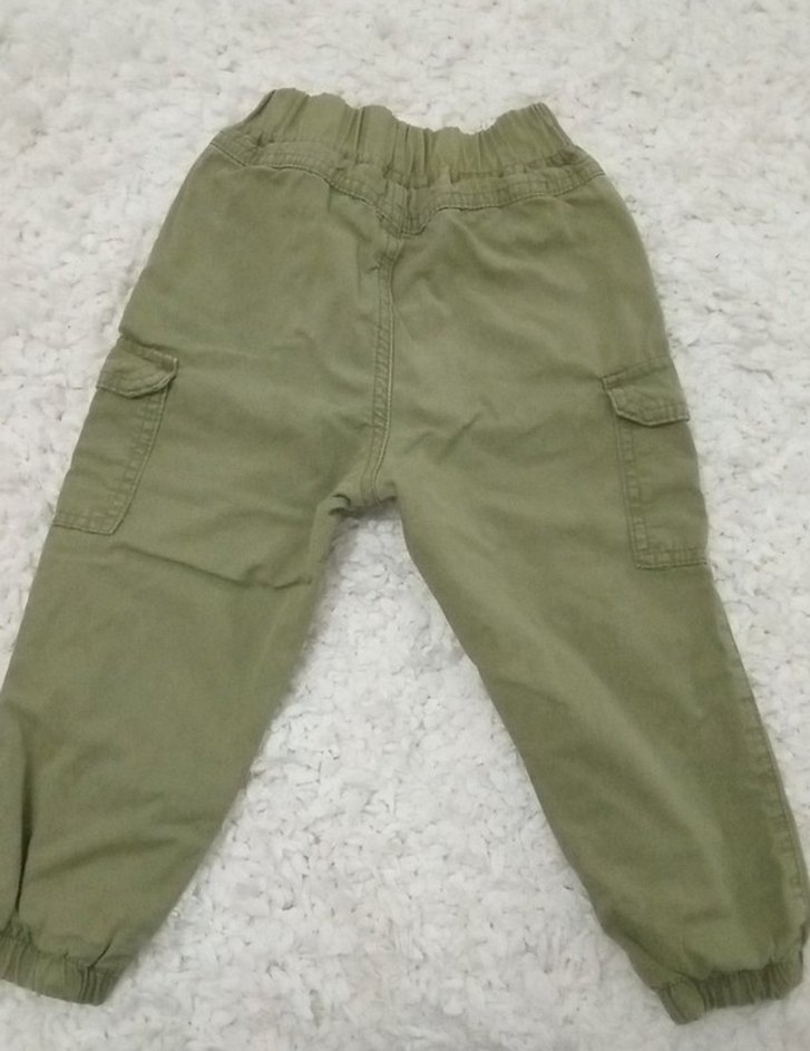 Düğmeli detaylı, yumuşak ve sıcak kumaştan yapılmış haki renkli erkek çocuk rahat pantolon. Desensiz ve günlük kullanım için uygundur.